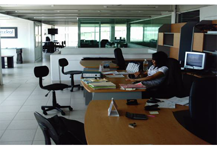 Desde el área de estacionamiento de vehículos y bicicletas (capacidad 8 cajones) se accede por escaleras a la entrada para obreros y proveedores, donde se delimita el área de vigilancia que incluye CCTV. Mediante pasillos y la estantería adecuada se separan las áreas que sirve de resguardo para la materia prima, dos andenes de carga y descarga, áreas de embarque, producción y producto terminado, así como un área de descarga adicional. Hay baños para hombres y mujeres, con área de lockers y regaderas en desuso, así como cuarto de maquinas donde se ha instalado el equipo que da soporte a la red de voz y datos y cuarto que realiza las funciones de bodega principal. Mediante escalera se accede a las oficinas administrativas que constan de vestíbulo, área para 4 escritorios, sala de espera, sala de juntas, 2 baños, 2 oficinas directivas y una adicional.